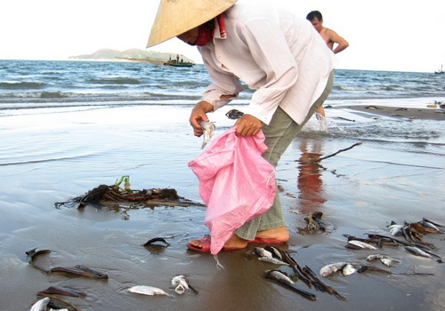 Ngày 10-9, hàng nghìn con cá mòi chết bất thường tiếp tục bị sóng đánh dạt vào bãi tắm Cửa Lò và bờ biển thị xã Cửa Lò (Nghệ An)