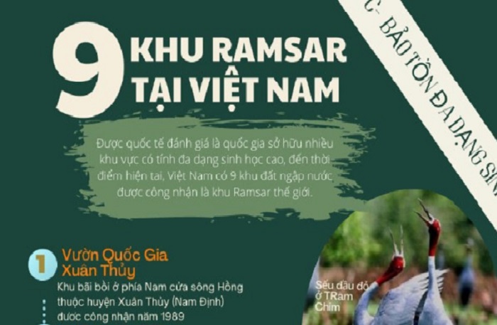 Đến thời điểm hiện tại, Việt Nam có 9 khu đất ngập nước được quốc tế công nhận là khu Ramsar (vùng đất ngập nước theo Công ước Ramsar). Nếu