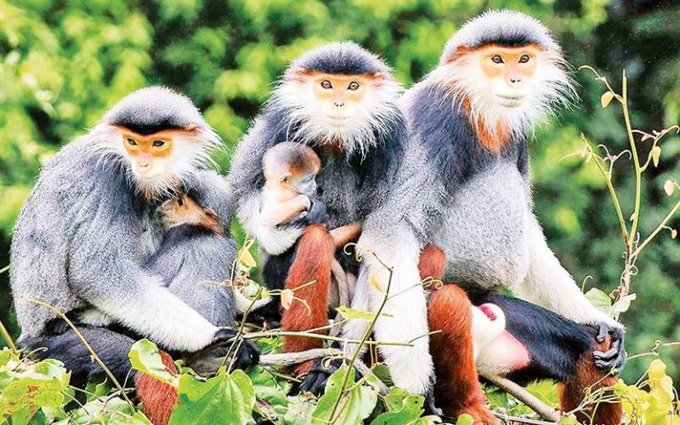 Những hình ảnh sống động về cặp cá voi khổng lồ kiếm ăn ở vùng biển Đề Gi (Bình Định), về “đại gia đình” voọc chà vá chân nâu quấn
