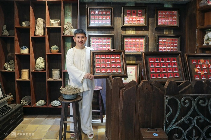 Những khối tiền xu có niên đại từ thế kỷ 1 được ông Huỳnh Minh Hiệp, 49 tuổi, ở quận Phú Nhuận sưu tập từ nhiều năm nay.