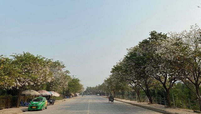 Những ngày này trên các tuyến đường của TP. Điện Biên Phủ hoa ban nở trắng muốt; buổi sáng trời trong, tiết trời hơi se lạnh, gió sớm hiu hiu