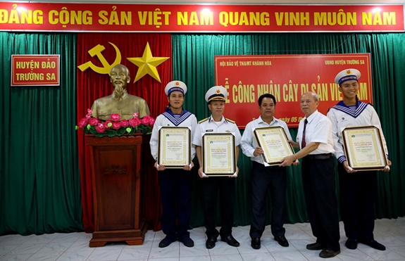 Nhân ngày Môi trường thế giới, tại UBND huyện đảo Trường Sa, Hội bảo vệ thiên nhiên và môi trường Việt Nam (VACNE) đã tổ chức lễ trao Bằng công